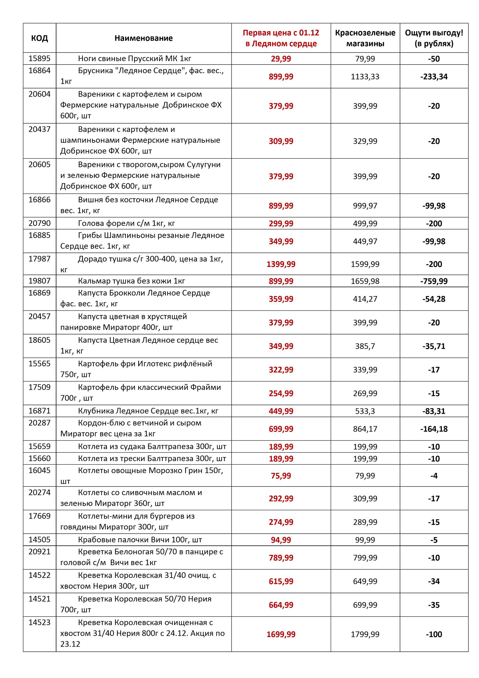 *«Первая цена» - цена, полученная путем сравнения цен магазинов Ледяное сердце на территории г. Калининграда. **Акция «Первая цена» действует с 01.12.2025 по 31.05.2026. Количество товаров, в зависимости от ассортимента и торговой площади может отличаться в большую или меньшую сторону. Цены указаны в рублях и действуют в магазинах «Ледяное Сердце». Скидка по карте «Ледяное Сердце» на данный товар не распространяется и не суммируется с другими скидками. Организатор ООО «Ледяное Сердце». Товары выделены специальным ценником "первая цена". Информация об акции на сайте Ледяное.рф.